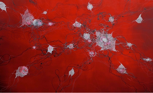 Jesse and Anne collaborate to produce artworks which are in some way inspired or touched by science. Jesse and Anne work closely on the genesis, creation and narrative of each painting. Anne and Jesse discuss each artwork as it progresses and Jesse provides the titles for each work. Jesse is making sculptural forms which will then become three dimensional paintings. View our works at